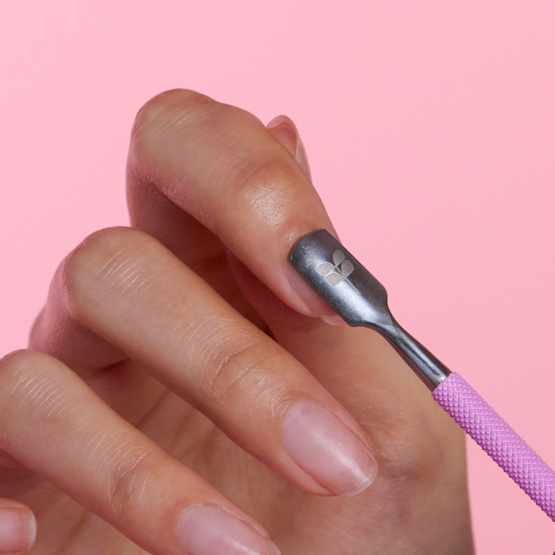 2. Using the rounded end, gently push cuticles up and away from the nail bed.